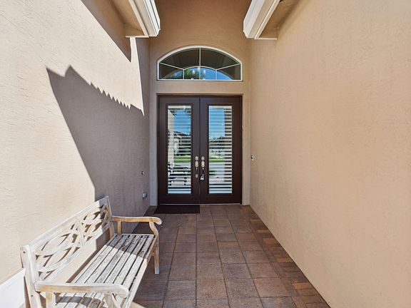 3 BD + Den & Hobby room, 3.5 Bath ''Julia'' model with over $170K in Upgrades! Situated on a Builder's Premium Lake lot offering a widened driveway, walkway and 2CG. Boasting Crown molding, Coffered ceilings, abundance of LED hi-hat lighting, 24 x 24 Tile flooring, Plantation shutters, Designer light fixtures and fans! The Granite kitchen features stainless steel appliances, Double oven, custom Antique White 42'' cabinetry with 4'' granite backsplash and a spacious Island! An open floor plan designed for easy entertaining with a formal dining room and spacious great room. The opulent master suite features custom built-out walk-in closets, upgraded Espresso vanity with Quartz countertops, framed mirrors, custom linen cabinet, and frameless shower. Home is complete with a Generac "Guardianship Model" 22-Kilowatt Full Home Generator & 500 Gallon LP Propane Tank, epoxy flooring in garage, gutters, screened and pavered covered patio, custom landscaping, glass entry door & impact windows! Maintenance is $2112.00 paid per quarter and includes lawn, alarm monitoring, manned gate, cable package, internet, and amenities. Valencia Cove is a premier 55+ lifestyle community featuring a spectacular 39,000 square-foot clubhouse and 10-acre outdoor recreational facility. Endless activities, trips, shows, and clubs of all types. The clubhouse features an expansive foyer and lobby, grand ballroom with raised stage and dance floor, four spacious card rooms, Cafe with indoor/outdoor seating, Arts and crafts room with kiln, Internet/Billiards room, Office, Catering kitchen with separate demonstration cooking studio, Yoga & exercise studio with ping pong, fully equipped fitness center and men's and women's locker rooms with steam rooms, massage room and showers. There are 4 pools - a beautiful Resort-style pool and Shade Pavilions, Lap pool with Swimmers' Lap Lanes, Resistance walking pool, Grandchildren's wading pool, and an Outdoor whirlpool spa. There are 8 har-tru tennis courts with shade pavilions and lighting for night play, tennis pro shop, tennis pro, league play, 6 pickleball courts with league play, 2 bocce courts, half-court basketball and walking/jogging/biking paths throughout and just outside the community. Valencia Cove is conveniently located near shopping, restaurants, houses of worship and major highways!
