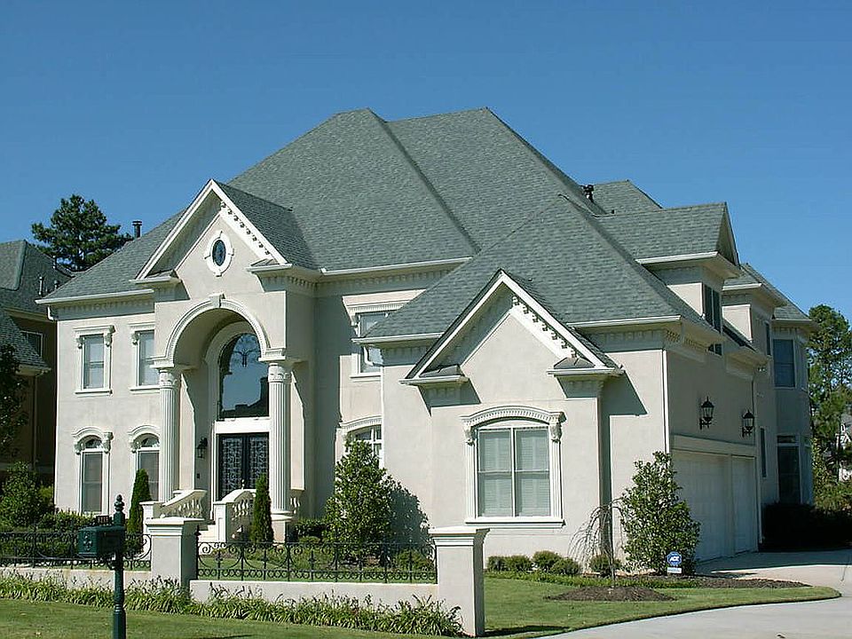 BEST LOT! Enjoy golf green & lake views from almost every room in this well designed chateau. Grand iron & marble entrance, top-of-line oversized kitchen, entertainment porch w/ outdoor fireplace o'looking spectacular views. Palatial master suite with European dressing room. Spacious and sensible floor plan includes paneled library, banquet dining, guest suite on main, sunlit living room, family/keeping room open to kit. Trim detail in this home is above & beyond. Paver lined driveway/walkway; waterfall in backyard. HOME IS IMMACULATE! Hardcoat stucco. Tons of sq ftg.