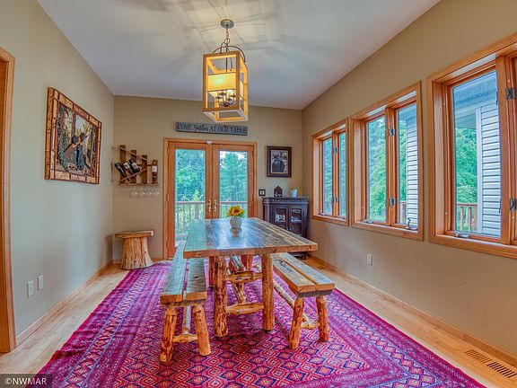 Beautiful stump lake home boasts an impressive 5 bd, 4 ba, 5700+ sq ft custom built by Richie and Olson is quite spectacular. Seller has a long list of lovely upgrades from the custom built bookshelves in the elegant Library to the new tongue & groove cedar/pine ceiling w/new ceiling beam. Enjoy main level living w/this appealing master suite includes a fireplace, sauna, new built private deck w/hot tub, an office & of course plenty of closet space. Views of the water from the living room are captivating & you’ll love the large deck facing the lake & fire pit. Bonus rooms include home office, large exercise room, large game room, secure gun/storage room & a large workshop leads to the backyard. From the new alumigrain floe dock you can take your boat/canoe/kayak to Lake Bemidji through the gorgeous Mississippi river. Come see all this ideal Lake home has offer.