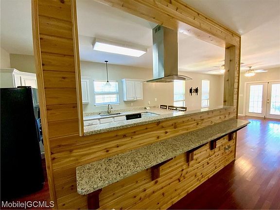 Are you looking for a waterfront home? This cute cottage comes with two lots providing lots of privacy. Enjoy quick access to the Mississippi Sound from the bayou for fantastic fishing. You will have plenty of room for multiple boats with this amount of water frontage. There is plenty of fish to catch in the backyard, or relax and watch the fish jump in the water. Additional features include an above-ground pool, boat lift with shelter, a 24 x 14 dock, and the large deck over the boat lift is perfect for entertaining. The living room is open to the updated kitchen and has a split bedroom floor plan. This location is only 25 minutes from Dauphin Island for plenty of activities. Contact your favorite Realtor for personal viewing.