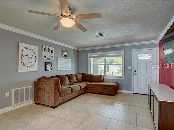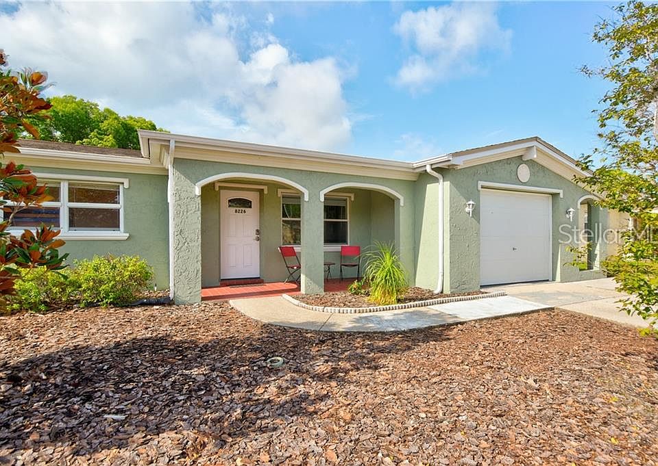 GORGEOUSLY REMODELED PORT RICHEY 2 Bedroom, 2 Bathroom, 1 Car Garage, above-ground pool home welcomes you home! Enter through the front door beside the adorable front porch area to an open and bright living room complete with crown molding, ceiling fan, and a large front window. The kitchen, open to the dining room area, includes GRANITE COUNTER TOPS, WOOD CABINETS, SUBWAY TILE BACKSPLASH, an eat-in area at the granite top island, and a window for a full view of the back yard. The master bedroom includes an en-suite master bathroom. Guests will enjoy their large bedroom with a spacious closet for storage. Both bathrooms have been updated with granite counter top vanities and beautifully tiled shower areas. The enclosed Florida room, which includes an AC vent and a slider to the backyard, adds an additional entertaining area. Other great features include: NEW WOOD BLINDS, NEWER EXTERIOR AND INTERIOR PAINT, NEWER ROOF (2013), CROWN MOLDING, DOUBLE PANED WINDOWS (partial), NEWER HURRICANE RATED GARAGE DOOR (2014), and an RV ELECTRICAL HOOKUP AND PARKING PAD. Enjoy the privacy in the above ground pool surrounded by a newer vinyl fence in the back yard. Irrigation system in place.