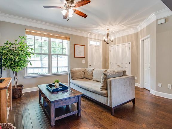 Coveted end unit with a rocking chair front porch. NEW wood flooring on main level. NEW carpet in basement. NEW light fixtures & NEW paint. The basement has a spacious living area, office & full bathroom with a newly refinished tub.