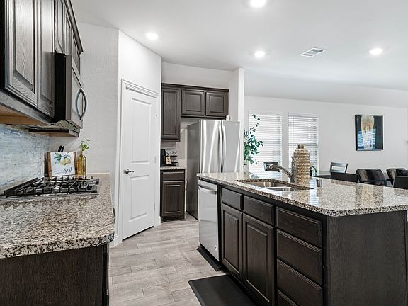 the light, bright open layout, where the spacious kitchen steals the show with its granite countertops, center island,