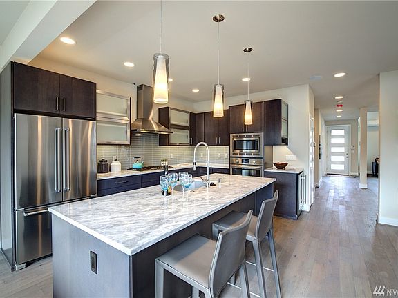 This Stunning Modern Home has it all:Open floor plan w/ Abundant natural light.Lrg frml Liv rm w/ Gas frplc,D/R.Fam rm off Open Gourmet Kitchen w/ slab Quartzite Island & counters,Lrg cvrd Deck w/ Gas BBQ Outlet.Hardwoods thru-out 1st level.Master suite w/ tub/shower/wk in closet/Quartz counters.Top flr Bonus rm w/ a Wet bar,1/2 bath & big rooftop Deck.AC in 1st flr,Mstr & in Bonus rm.In floor Hydronic Radiant heat thru-out ,Super energy efficient.4Star Built Green Certified.3 Blks to Greenlake.