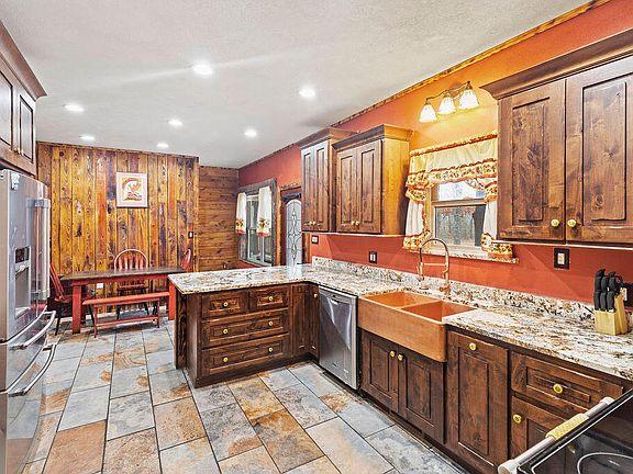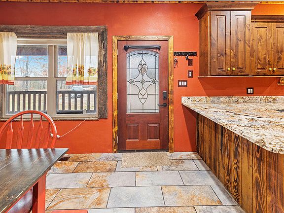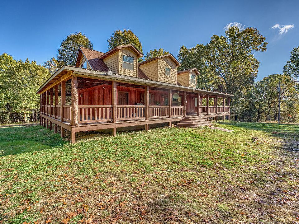 Welcome to your fully-furnished dream home on 5 peaceful acres! Get ready to fall in love with this 4BR/3BA charming custom-built home as soon as you step foot on the 1700sqft wrap-around porch. Inside, you're greeted by a spacious modern kitchen, with granite counter-tops and updated appliances, before entering the loft-style great room that boasts stunning vaulted ceilings and a large wood-burning fireplace. On the first floor, you'll find an expansive master suite that not only walks out onto the wrap around deck, but includes a custom rock shower with a rainfall shower head, heated jacuzzi tub, walk in closet, AND an oversized gun-safe. This private home sits only 10 miles from town while being in close proximity to miles of creek floating, hiking, & ATV trails.Additional Info Below