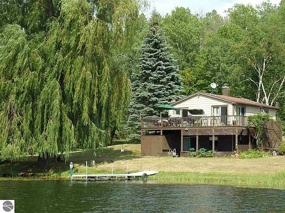 Looking for a turnkey lakefront home in move in condition? This updated and completely furnished home has 153 feet of open, private waterfront to really enjoy the wonderful view and spectacular sunsets! Boat for miles on the Upper Chain of Lakes all the way to Intermediate Lake right from your private dock. Lots of natural light and easy access to the huge wrap around deck with 3 newer door walls. Master bedroom on the main floor or retreat to the lower level bedroom with cozy fireplace and plumbed for a private bath. Nicely updated kitchen with laminate flooring. Great for year round or seasonal use. For the winter enthusiasts there are miles of snowmobile trails nearby. This very well maintained home has a new roof, no steep driveways, and lakefront right out your door. Quick move in available to enjoy this summer. Convenient location just minutes from village park and boat launch and close to Charlevoix.
