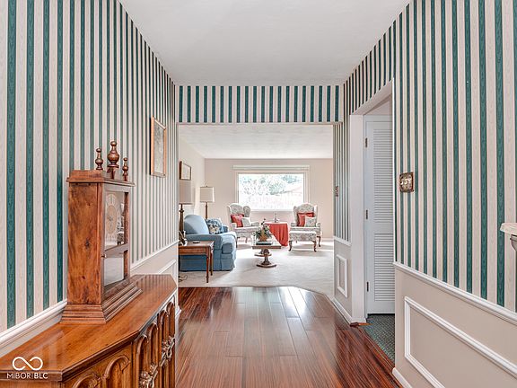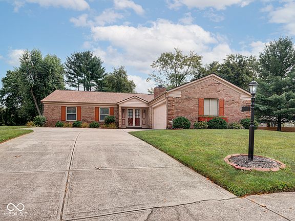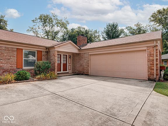 Tucked away in a quiet cul-de-sac in the Tempo neighborhood on Indy's east side, this well-maintained brick ranch offers a peaceful retreat with a spacious backyard. Upon entering, you're greeted by a beautiful foyer with updated flooring, leading to a bright and airy living room and dining room with large windows that fill the space with natural light. The kitchen extends into a cozy dining nook and sitting room with a fireplace, creating tons of flexible living space. The primary bedroom features an en-suite bathroom with a walk-in shower, while the other three bedrooms showcase classic parquet wood flooring. An additional full bathroom with a bathtub is centrally located, and both bathrooms have charming lilac tile. The property features an attached two-car garage with attic access, and a functional mudroom/laundry room connecting to the house. Outside, you'll find a generous deck perfect for entertaining, along with a storage shed. With all appliances included and a roof just 2 years old, this tidy, low-maintenance home is move-in ready.