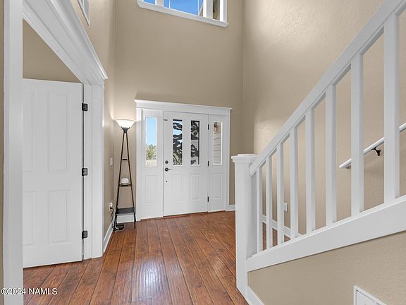 Don't miss out on this custom 5 bedroom, 3.5 bath home, 3 car garage on 2.5 acres located on paved roads without the HOA. This beautiful mountain home has all the amenities you'll need. A/C, soaring ceilings, rock fireplace, laminate flooring, new carpet and interior paint, 2 master suites (one on the lower level), prewired for a hot tub out back, amazing views and unforgettable sunsets over the mountain. Bring your horses, trailer and toys to enjoy the nearby forest service trails. This is the perfect setting for barbeques and memories with friends and family. Only minutes from the Flagstaff Mall. Lots of room to add a guest house, shop or both.