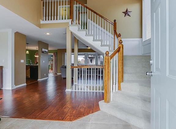Beautiful 2 Story in Benson Place! This open floor plan welcomes you with spacious kitchen that provides a fabulous pantry, and hardwood floors. Living room with fireplace is flooded with natural light with floor to ceiling windows. Second level includes four bedrooms, master with vaulted ceiling, walk-in closet, and laundry on same level. Entertain in finished lower level with wet bar and recreation room, and playroom/office. Enjoy fenced backyard with deck and in-ground sprinkler system.