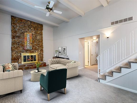 The kitchen is open to the dining room that flows to the living room, perfect for entertaining. Family room with stone hearth and gas fireplace, your place to relax and watch the game!
