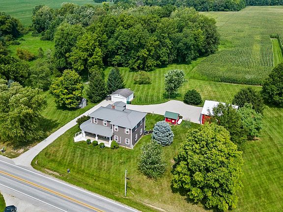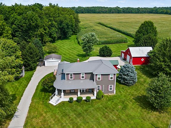 A stunning 10-acre property adorned with renovated farmhouse. A paradise for nature enthusiasts, this land boasts a delightful blend of open space and woodlands, attracting a myriad of wildlife. The residence itself offers a generously proportioned floor plan spanning over 3,100 square feet of refined living space. Additional features include an unfinished basement for storage, an expansive 30x46 outbuilding, and a convenient two-car garage. Upon arrival, the property immediately captivates with its exceptional curb appeal and a charming wrap-around front porch, showcasing a harmonious fusion of contemporary siding and a classic brick facade. Stepping through the front entrance, you're greeted by a spacious living room adorned with exquisite laminate flooring. This expansive area is flooded with natural light, enhanced by a graceful hardwood staircase and French doors that open up to a serene back deck. A wide archway leads you to the adjacent dining room and kitchen, forming a seamless and inviting space perfect for culinary endeavors, dining experiences, and hosting gatherings. The laminate flooring continues, harmonizing with the white cabinetry and accent island, creating a visually pleasing and functional ambiance. Nearby is the spacious laundry room, complete with a utility sink, cabinetry, shiplap walls, and supplementary room for pets or additional appliances. Nestled behind the living room, the primary bedroom. This tranquil haven is appointed with double closets and a pristine, newly designed bathroom. Showcasing a stand-up shower with glass doors, a freestanding soaking tub, and his-and-hers vanities. The second level, you'll discover more well-appointed bedrooms and an additional full bathroom. The landing area on this level offers a versatile space perfect for crafting a cozy reading nook or establishing a functional home office. The full basement contributes 740 square feet of finished living space, featuring a open family/den area. This space offers flexibility for various uses and is complemented by ample storage and convenient half bath. Outside, an inviting open deck and yard that frames scenic views of the picturesque surroundings, including neighboring farm fields. Embrace the opportunity to experience this exceptional home firsthand by scheduling a tour today.