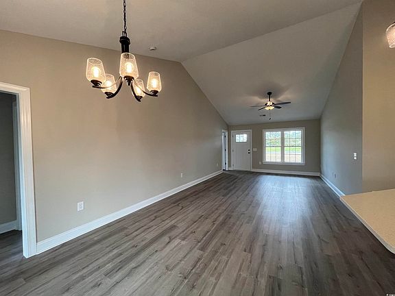 This new construction home features 4 bed and 2 bath with all LVP flooring and granite countertops throughout. The kitchen boasts a lovely, vaulted ceiling, and open concept to the living and dining areas. Stainless steel appliances furnish this beautiful kitchen with soft close cabinets, tile backsplash, kitchen island, and pantry. The master has tray ceilings and separate his and hers closets in the spacious master bathroom. The master bath also features a double vanity, soft close cabinets, linen closet and shower. This split bedroom plan has 3 guest bedrooms with a guest bath offering soft close cabinets, and tub/shower combo. Outside enjoy your large covered screened back porch in this lovely county setting on .83 Acre with NO HOA! Call today and ask how you can make this your future homesite.