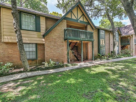Nestled among the trees you will find beauty and serenity in this well maintained, 1st floor, 1 story condo. 8229 Kingsbrook #125 is the ideal place to call home with its 2 bedrooms, 1 1/2 baths. Beautiful wood floors in main living area, long clean lines, lots of natural light and an updated galley kitchen with subway tile. Nicely appointed bathroom with separate dressing area and walk-in closet. Step through the French doors out onto your covered patio to enjoy a cup of coffee and a little fresh air; or find yourself cooling off during these hot Houston days in the shaded pool. Easy access to I-10 and the 610 Loop and close to restaurants and shopping. Amenities are water, electric, basic cable, garbage, community pool, landscaping, patio storage unit with lockable metal door. 1 assigned carport parking. Contact your real estate professional today and make your appointment to stop on "buy" for your private showing.