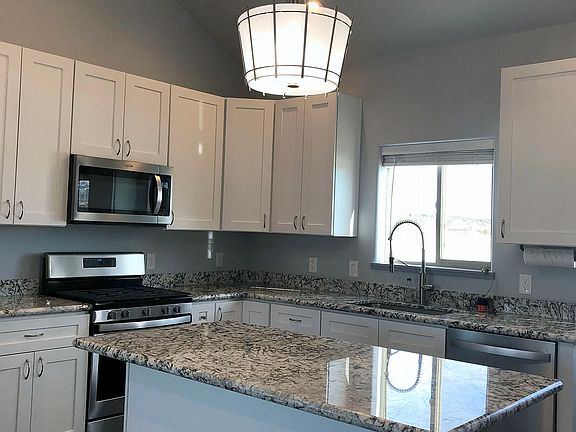 This listing is for the smaller home set on the back of the property, very private from the main house. This home boasts a beautiful open floor plan that was completed in 2019 with up-graded stainless-steel appliances, Alaskan white granite in the kitchen and bathroom, and durable wood-grain plank laminate flooring throughout. The bathroom has an extra-large soaking tub with mermaid stone accent and double vanity. The home includes a huge 210 square foot loft, in unit washer/dryer laundry center, castle pellet stove, fenced backyard, and an oversized 250-gallon propane tank. Wonderful mountain views and breath-taking sunsets await you.