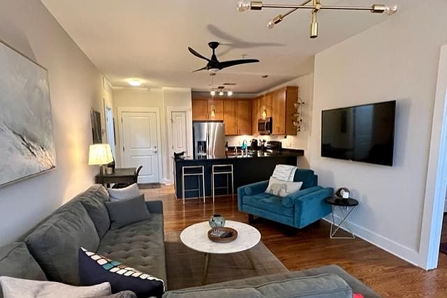 This beautiful fully furnished condo is in the heart of Nashville just steps away from Sounds Stadium, Germantown, and downtown. It is a one-bedroom, two-bathroom residence with an office/music room including the grand piano. The master features a king-size bed. This home includes all utilities and a full-size stackable washer and dryer. The living room and balcony overlook the Nashville skyline. Walk to neighboring restaurants and the farmer's market. Gated assigned parking included. All utilities included All furnishing included Pets upon approval Deposit of one month's rent No smoking