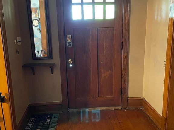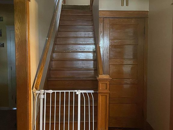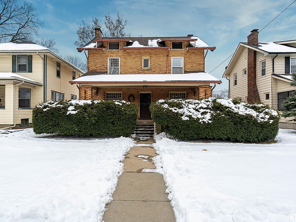 The coolest windows I have ever seen! Main level has a large living room, dining room, kitchen and 1/2 bath with laundry. The living room has a fireplace. 3 bedrooms and a full bathroom upstairs. Walk-up attic. Two closets off the master bedroom. One is a walk-in with a stained glass window. There is an extra closet off the hall with built in dressers. Beautiful front porch to sit and drink coffee or watch the snow fall. Good sized back yard with a two car garage off the alley. Backyard has newer privacy fence (Spring 2021). Set up your showing today! So many great details to this house!