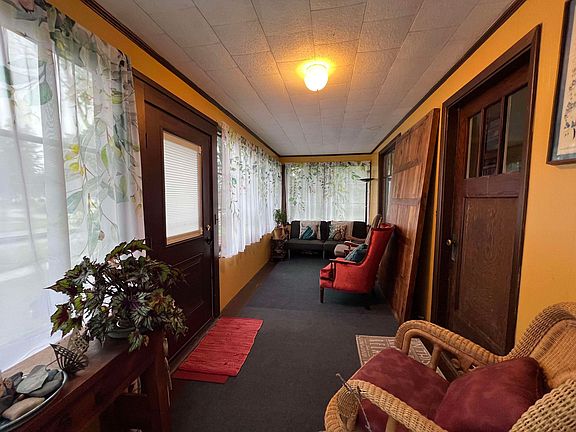 A traditional 2 story home located a few hundred feet from Central Park! Central Park is a gem with the manicured park offering 9-hole disc golf course, pickle ball and basketball courts and a new playground! Situated on a large corner lot this home offers a 20x24 garage, off street parking, partially fenced yard, covered patio between the home and garage, deck and perennial gardens in the fenced area and beautifully landscaped around the home. The main level includes an enclosed 3 season front porch, foyer entry, open to the living room and dining room, and an eat-in kitchen. Hardwood floors, crown molding, built in hutch in the dining room, and the kitchen overlooks the fenced yard through a large picture window. The 3 bedrooms and full bath are on the second level and feature walk-in closets, picture rail trim, hardwood floors, and an updated bathroom. The full basement includes the mechanicals, breaker service panel, 1/4 bath and storage. Improvements include new roof, exterior paint, and gas furnace.