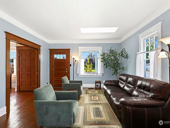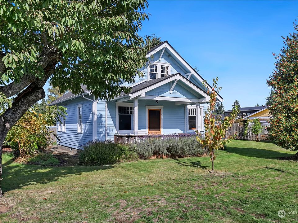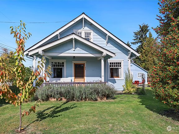 This Heart of Puyallup charmer on a big corner lot is sure to please. Vintage details, original millwork and windows grace this lovely home and the modern kitchen is a delight, plenty of vanilla shaker cabinets, nice working island, Viking range & hood, Richlite countertops, pot filler, and Bosch DW. Built-in stereo. Primary bedroom on main w/ built-in murphy bed and a convenient half bath. Added full bath on main, complete w/ penny tile, a real claw foot tub and walk-in tiled shower. Heated floors complete the upgrade. Upstairs has 2-bedrooms. Yard is fantastic, super private; all set up for gardening w/ greenhouse and raised beds. Original barn is a 1-car garage and a great shop area, sewer, electric and water stubbed in. 10 yr old roof.