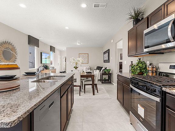 ''The Sawyer'' by DR Horton. Stunning 4 bedroom, 2 bath and 2 car garage. Open great room and dining area invite's easy entertaining. Elegant kitchen with granite counter tops, kitchen island, Whirlpool appliances and spacious walk-in pantry. Ceramic tile floors in kitchen, dining and all wet areas. Large private primary suite. Primary bath with raised double vanity, ceramic tiled walk in shower and large walk in closet. Smart home with Amazon Alexa connect. Refrigerated air, low- e windows. $5,000 in closing cost with DHI mortgage.