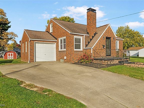 Welcome to 823 Bernard St SW, a classic Cape Cod-style home featuring a timeless brick exterior, situated on a generous double lot in the heart of Massillon. Nestled in a peaceful neighborhood, this home radiates warmth and charm that you must see to appreciate. Through the front door, you'll be greeted by a charming entryway that flows into a spacious living room featuring a wood-burning fireplace, creating the perfect setting for cozying up on chilly evenings. Arched entryways and solid oak woodwork add character throughout the main living space. Beyond the living room is the dining room with sliding glass doors that open to a covered back patio. Just to the left of the dining room is the well-equipped kitchen with ample storage and convenient access to the garage and basement. The main level also offers two comfortable bedrooms, separated by a well-appointed full bathroom.