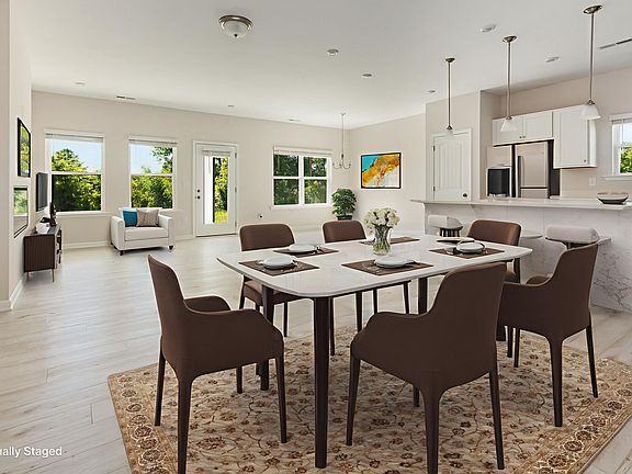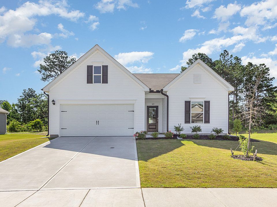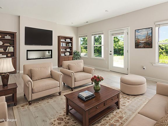 Welcome to this beautifully designed ranch-style home offering both comfort and style! The spacious kitchen features 36'' white cabinets, a large center island with quartz countertops, stainless steel appliances, and ample storage—ideal for daily living and entertaining. Enjoy low-maintenance Enhanced Vinyl Plank flooring throughout with no carpet. The inviting owner's suite boasts a luxurious walk-in shower, double vanity, and an oversized walk-in closet. Cozy up next to the sleek linear electric fireplace, or unwind on the covered patio with views of mature trees for added privacy and tranquility. This move-in-ready gem blends modern finishes with thoughtful details—don't miss your chance to make it yours!