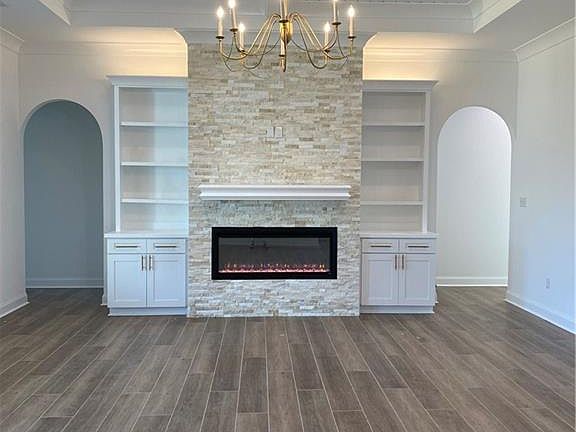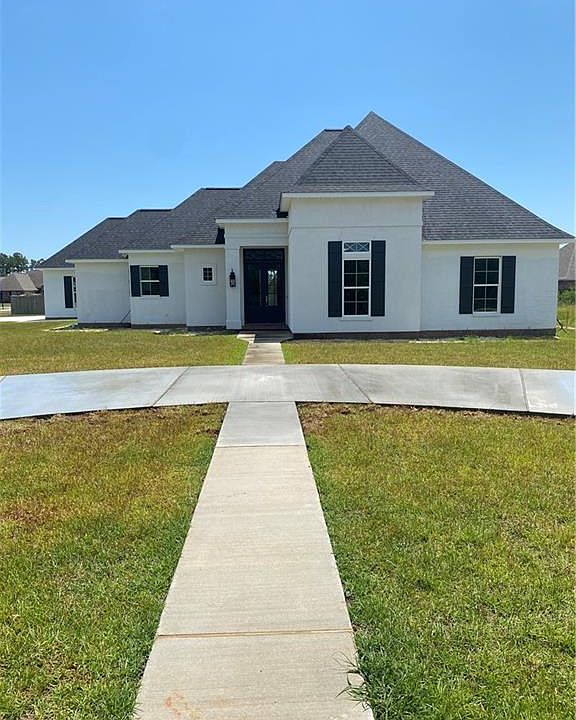 Grand New Construction on 1/2 Acre Lot with plenty room for RV/ Boat /additional garage/ work room/ swim pool/ Cabana. Property has triple driveway, double garage and circular driveway on corner lot, kitchen island open to living room, quartz counters throughout, office room, mud room, living room with raised wood ceiling, beautiful electric fireplace on stone wall that can be used year round with bookcases in family room and wall of windows, luxurious master bedroom and bath with marble look tile in shower, with a total of 4 bedrooms plus an office and 3 baths, wood look tile throughout and no carpet, upgraded lighting with lighted mirrors in bath, breakfast room and family room has gorgeous chandeliers and windows overlooking extra large rear patio 32.5' x 13', brick front porch, 6 gallon electric hot water heater fed by tank-less hot water heater for faster, endless hot water, very high elevation 24 feet above sea level in