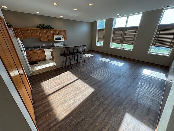 Tons of Natural Light! 2 Bedroom, 2 Bath, Open Concept Kitchen, Living and Dining Rooms with Laundry, Kitchen Island and 11' ceilings! The first bedroom is huge at 12' X 22' able to accommodate two queen beds comfortably and includes built-in desks with skylights above them. The first bedroom also includes two ceiling fans and two walk-in barn door closets. Enjoy your kitchen with full sized stove, refrigerator, dishwasher, and kitchen island! Grinnell's downtown central park is right across the street with a great view from the apartment! Take a stroll downtown and grab donuts at Grin City in the morning, catch the latest flick at the Strand Movie Theater and then some pizza a Pagliai's, or a burgers at Hometown Heroes! Owner pays water. Renter pays electric.