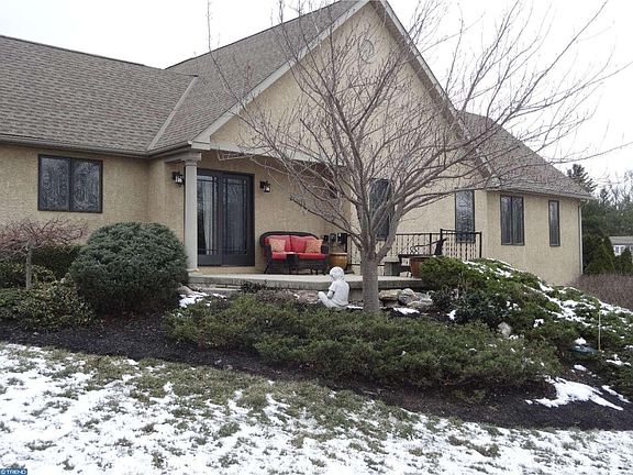 ONE OF A KIND HOME, featuring a TRUE In-law suite. Gorgeous, sprawling ranch home that sits on picturesque lot, located in Franconia Twp. Main home has 4 Bdrs, 2.2 Baths,and attached 2 1/2 car garage. 2400 sq. ft on main level and 2400 sq. ft. in an amazing, Finished Bsmt. In-Law Suite has 1300 sq. ft, 2 Bdrs. and 1.1 Baths. Master Bdr. located on the Main floor, private entrance, 1 Car Garage, and a Finished Walkout Bsmt with additional 600 sq. ft. Main Home features Large Family Rm. with Cathedral Ceilings, skylights, and brand new upgraded carpeting. Kitchen has cherry cabinets with crown molding & light rail, granite countertops, travertine backsplash, newer Stainless steel appliances, Brazilian cherry Hardwood flooring, desk area, and walk in pantry. Breakfast Rm leads to gorgeous paver patio. Patio has seating area, Dining area, and fire pit that overlooks large koi pond with 3 tier waterfall. Back inside, Dining Rm has 15' ceiling, enormous window, and new hard scraped Tigerwood Hardwood flooring, flooring also just installed in Office. Double doors lead to Master Bedroom, walk-in closet, and Master Bath. Master Bath remodeled with double bowl vanity, jetted tub, and walk in shower. Shower has granite bench and tile niche. All custom tile throughout Bathroom. 2 other Bedrooms on Main floor that are tastefully decorated. All Bedrooms have ceiling fans. Full Bath has large double bowl vanity. Brand new heater, Anderson windows, crown molding, recessed lighting throughout and freshly painted. Finished Bsmt. is an entertainers dream. Bedroom, Updated Bath, Laundry Rm with laundry shoot, Family Rm. and a separate ultimate man's cave. Additional TV Room with custom bar area. Exotic granite, built in commercial glass door refrigerator, and sink. Loads of space to hold the ultimate Super Bowl parties! In-Law Suite is 10 yrs old. Top of the line Kitchen, exotic granite, and Bamboo flooring runs throughout. Dining Area, Living Room has cathedral ceilings, and gas fireplace. Master Bedroom with tray ceilings, and full Bath. Double bowl sinks, jetted tub, shower, and ceramic tile flooring. Main level also features Laundry Room and Powder Rm. Walkout Finished Basement with Family Rm, Bedroom with two windows, and storage areas. Pella Windows, Central Vac system, crown molding and recessed lighting. Outside you have a private patio with small pond. Electric dog fence Located within 5 miles from PA Turnpike. Stucco Inspection has been complete with no major issues