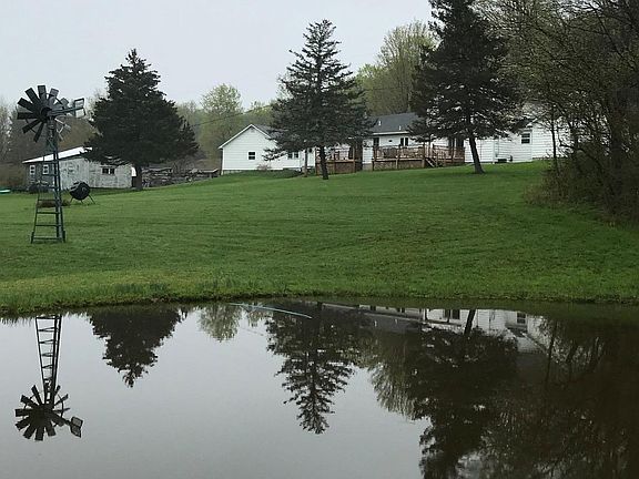 A gem in the country! One side is a 2 bedroom ranch and the other is a 2 bed, 2 bath, two story. This house is spacious and well maintained. Each side has their own private deck, with attached 2 car garage. You never have to be out in the rain, pull into the garage and enter the house through your enclosed breeze way. The property is just over 8 acres with a pond, out buildings, trails, and creek. Enjoy nature at its best! Borders state land.