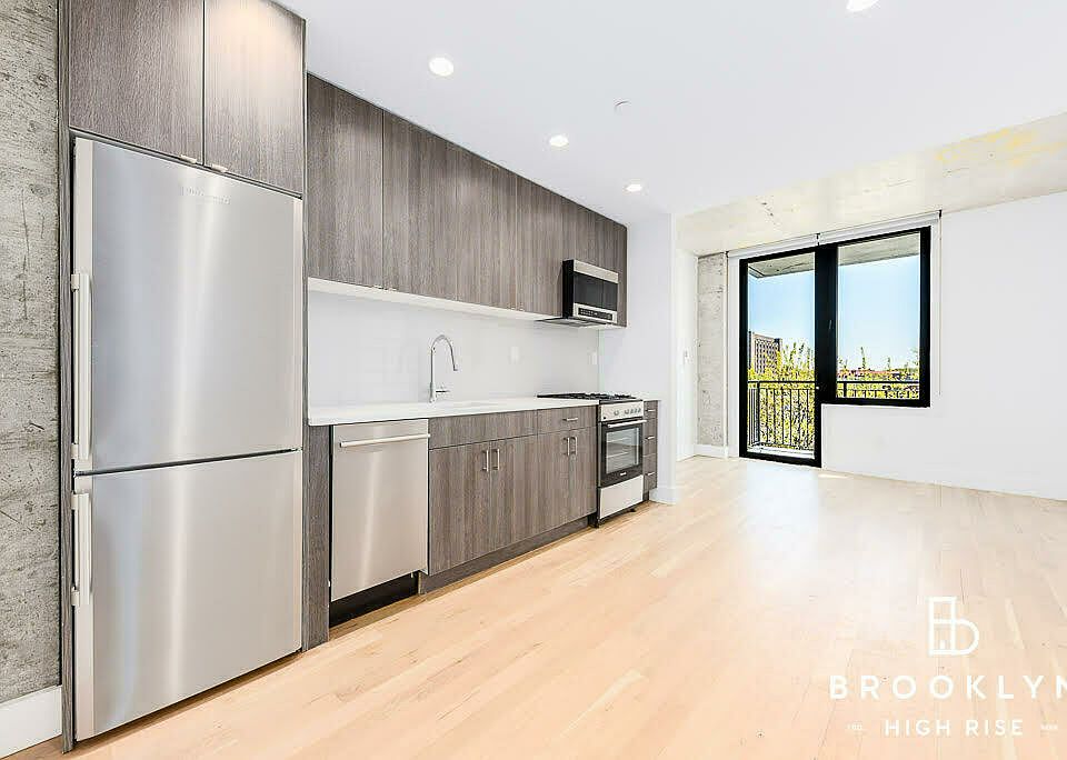 Welcome to 824 East New York Ave A spectacular development featuring a State of the Art Gym, Furnished lounge, Furnished Roof deck and more! This One Bedroom features a large balcony! High vaulted ceilings with concrete finish, Large windows giving off natural light. An open kitchen with Brand Name Appliances, dishwasher and custom cabinets with granite countertops. Ensuite washer/dryer, built in Heat/AC unit and virtual doorman. Building offers a Bike room. No Fee! Actual Floorplans! Close to Transportation, restaurants, bars, cafes, and coffee shops. Call, Text, or Email for a showing tailored to your schedule.