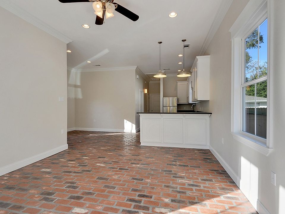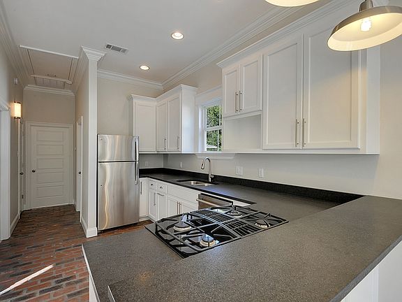 You don't want to miss this one! Beauregard Town, Great Front Porch, Courtyard, Off street parking, Picket fenced yard. No Flood Zone! 100% Financing Available through special loan product for owner occupants! 2 bedroom, 1 bath, open floor plan, new structure, custom wood cabinets, Black Pearl (leather matte finish) kitchen granite, raised bar, top of the line Stainless steel appliances include: Jenn-air gas range & convection oven, Kitchen Aid dishwasher and GE refrigerator. Antique Copper brick floors throughout living areas, carpet in bedrooms, vintage honeycomb porcelain tile in the bathroom. The master bedroom closest includes the washer and dryer connections and porcelain tile flooring. The bathroom has a large vanity with storage, Carrara marble slab top, porcelain tub with subway tiled surround, beaded board wainscoting. 10 foot ceilings, extensive crown molding throughout. 8 foot wood front door, 8 foot front windows, all double insulated windows, custom wood shutters, architectural shingles, well insulated, attic access, ceiling fans, landscaped, be in the the heart of downtown! Call today for an appointment to see inside!