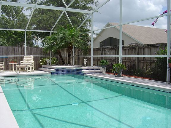 Enlarged side entry, two car garage. Kitchen is open to great room which looks out to large covered patio. All tile & hardwood floors. 2nd & 3rd bedrooms have double closets & built in desks. Master bath has jetted tub, separate shower, double sinks with vanity. Windows have custom Silhouette & black-out blinds. Lots of storage space. Granite kitchen countertops. Neighborhood Description Small neighborhood with only one entrance. Five minutes from grocery stores, West Oaks Mall, Citrus Elementary and the 408.