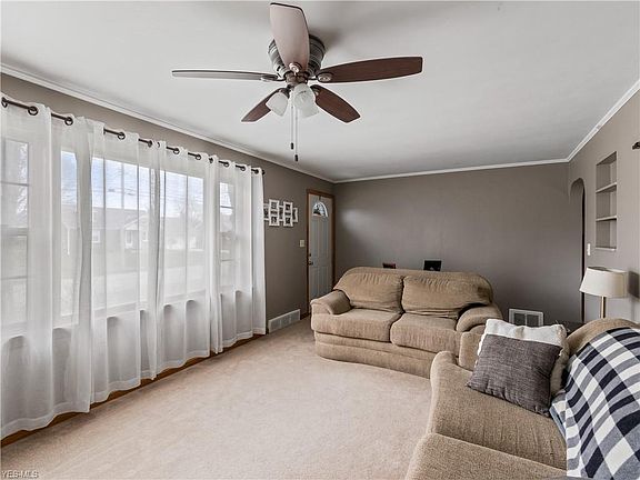 Adorable 3 bedroom 2 bath ranch tucked away on a dead-end street on the outskirts of Massillon!!! (GO TIGERS!) The brand new walkway and front steps lead into the welcoming living room filled with tons of natural light and fireplaced that is flanked with bookshelves and painted Magnolia style with a white-wash finish. The updated kitchen features crisp white cabinets, mosaic tile backsplash, stainless steel appliances and ample pantry space. The large master bedroom has wall- to -wall double closets. The additional 2 bedrooms flank the first floor main bath with tub/shower. Downstairs offers endless possibilities with framed room that is perfect for another family room, man-cave, or home office! There is another 1/2 bath in the basement and tons of storage! The backyard is a quiet oasis and the concrete patio is great for gatherings. Don't miss this one!!! Schedule your showing today!