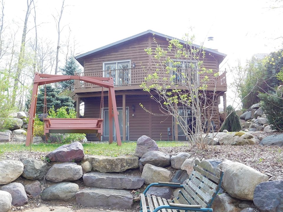 A unique setting for this lovely log home with 3 bedrooms and 3 baths and 118 frontage on the Baraboo River. The home is handicapped accessible with a ramp from the garage into the home. Steam shower, Sauna, Fireplace, skylights are just a few of the amenities offered here. New roof was put on in 2013 and new flooring in 2015. The lower level walks out to a nice landscaped yard of perennials, rock gardens, waterfall, and fire-pit. A must see if you enjoy being on water.