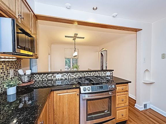 The curb appeal, charm, and quality renovations make this brick Cape irresistible! A lovely curved wooden door accented w/a leaded glass window welcomes you. Inside this PRISTINE home, you'll find hardwood floors, newer windows, freshly painted plaster walls, curved doorways & so much more! The 1st floor includes a spacious living room, a stylish kitchen open to dining room, & fab family room w/stunning cathedral ceiling, beautiful windows & swing-in patio door to deck. 2 cozy bedrooms & a full bath complete the 2nd floor. A wonderful surprise awaits you on the lower level! Head down the lighted open wood stairway to find an awesome master bedroom (or great room, if desired) w/spacious cedar closet, lighted tray ceiling, & patio door to the exterior, along w/a gorgeous full bath, cedar storage closet & wonderful laundry room w/door to oversized garage. Other features include a slate roof, lovely deck, attractive landscaping & fenced lower yard. 2.5 blocks to Foster Elementary!