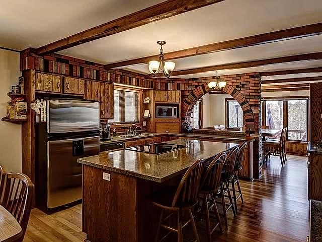 BIG STONE LAKE HOME - Seller is looking for an offer! Sacrifice nothing with this wonderful year around family home located on the SANDY shoreline of Big Stone lake on the Three Lake chain of Lakes. This home has something to please everyone! The wonderful cozy home offers 4000 square feet of finished living space including a lakeside master suite with stunning lake views, 2 additional bedrooms, a full bath upstairs, as well as a screened in porch lakeside, a HUGE deck, an over sized kitchen/dining/great room complete with a huge wall of windows and California driftwood fireplace perfect for cozy entertaining. The lower level also offers a walkout, 2 bonus rooms, a HUGE family room, a wood stove, an additional full bath and storage. Nothing is sacrificed in this home! The exterior offers BOTH an attached two car and a detached 4 car garage, a moderate lake approach for stunning lake views, southern exposure for warmth all year, a black top drive, new metal roof and SO MUCH more!