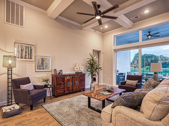 The Savannah has exquisite design along with lovely curb appeal, and the three-car side load garage sets the tone for style and functionality. The large covered front porch is the perfect place to relax and enjoy the evening. Enter into the large foyer with a study on the right. Just off the garage is a drop zone area, perfect for dropping off those flip-flops that are coming back from the resort-style pool! The second and third bedrooms, along with large walk-in closets are across from the foyer providing separation from the rest of the downstairs living space. Stroll into the open kitchen with a large pantry, great room, and dining room area, great to gather for an exquisite dinner or relax with family. The large laundry room is conveniently located on the first floor leading past a powder room. The private Owner's Suite with enormous Bathroom and double walk-in closets makes the perfect peaceful sanctuary. Enjoy the superb nature views underneath your massive 444 square foot covered porch.