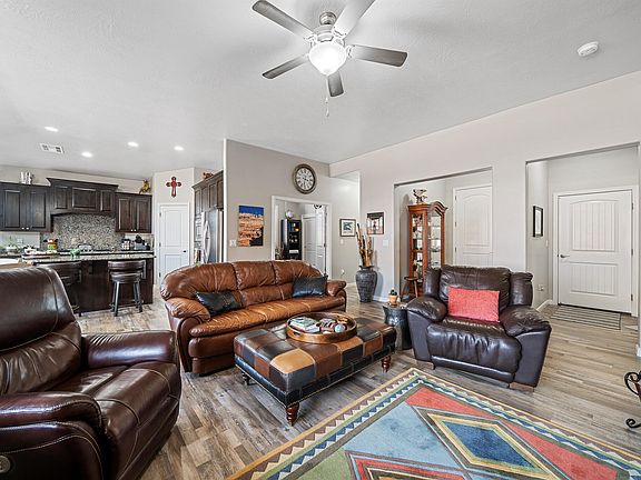 THIS home has MANY upgrades when the home was built for the owner in 2019. Great kitchen layout with open concept, backsplash over large gas stove, corner sink over window, cabinets have pullouts & soft close beautiful dark wood with nice granite countertops. IMMACULATELY kept home with plantation shutters in front with insulated pull up blinds throughout the remainder of the home. Laundry has upgraded cabinets for storage. RV Parking plus RV clean-out & RV connections. Garage is a dream for someone who loves to do projects, has sink with dishwasher in garage, garage floor has coating! Saltless WaterSoftener. Iron Gates, taller block wall was added for privacy. HOT TUB INCLUDED!! So much more to see, don't miss this one!!