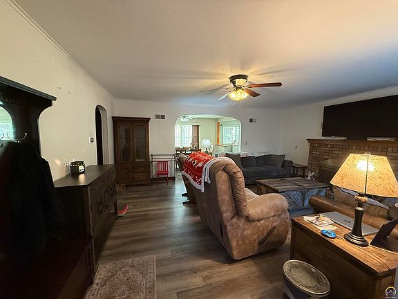 Don't miss out on this beautiful home close to downtown Atchison. It has been lovingly been cared for and will soon be ready for a new steward. The first floor features a large living and dining room, along with a fantastic kitchen, 2 bedrooms and updated full bath. Upstairs are two more bedrooms. While the basement is unfinished, it does have a 3/4 bath available. Hvac system is only 3 years old, hot water heater is 2 years old. Other recent updates in the last 5 years include: vinyl siding and windows, 3 entry doors, 6" gutters/downspouts, stonework on house, back deck and front brick patio, LVP. In 2018, new backsplash and floor tile in kitchen, full bath has new tub, tile and floor. Measurements are approximate.