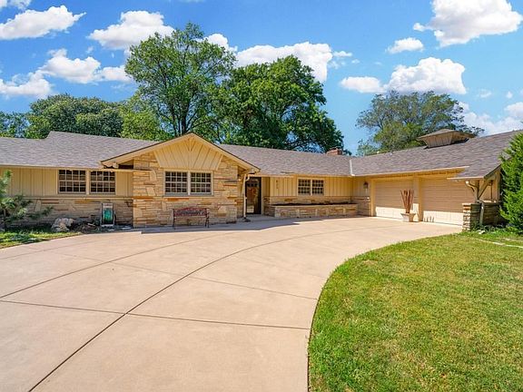 There's a quiet elegance to this Mid-Century Modern home. This is a gem, a rare find. All areas are updated keeping the character and integrity of a 1952-built home. A lovely foyer welcomes you into the main living area featuring hardwood flooring and large paned windows leading the eye to the nicely landscaped backyard. Next, move to the dining room with newer sliding doors leading to the patio and pergola. Then, on to the family room with a limestone fireplace and corner bookshelves. Kitchen, with lovely window overlooking the street, is the crowning glory with tile flooring and beautiful newer cabinetry with soft-close doors, pull-out shelving and under-cabinet lighting. Storage is ample as is counter space for prep. All appliances remain including refrigerator. The custom island will also convey. LED lighting has been added to many rooms. Three bedrooms, all with hardwood flooring, flank the south side of the home. Primary bedroom has backyard view and bath with shower. Bedroom 2 was apparently added on to at some point and includes space for a sitting room. The hallway full bath rounds out this part of the home. Off the kitchen is laundry room. Washer and dryer are negotiable. Oversized garage has newer concrete as does the driveway and patio areas. Backyard is completely fenced and has a generous storage shed. Metal art pieces adorning the gates, the large pot at garage and on the patio wall will stay with the home. Home is being sold in as-is condition. Closing will need to occur after an estate sale and that date has not yet been secured.