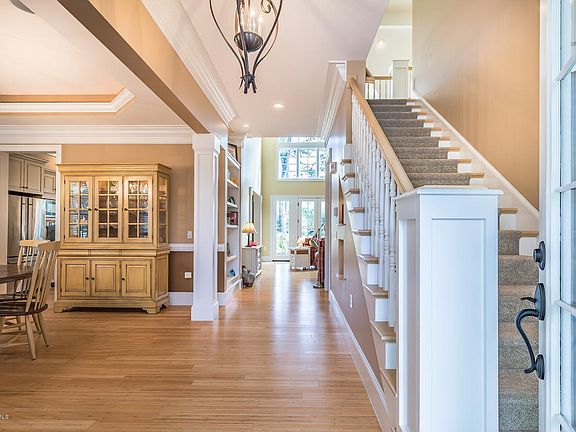SIMPLY STUNNING. This custom home comprised of 3,347 square feet was built to the highest of standards and offers exceptional craftsmanship and attention to detail. Beautiful bamboo floors and custom crown moldings are found throughout the main floor in this spacious, well maintained home. A light filled dining room with an expansive window is the perfect setting for large gatherings. The hardwood floors lead to the open and airy great room and features a wall of windows offering southern exposure and a stunning view of the pond and wildlife. Complete with a wet bar, beverage center and built-in cabinetry the great room checks every box. The custom kitchen with gorgeous cabinetry, granite counter tops, dedicated pantry, gas cooking and fabulous appliances will delight any chef.