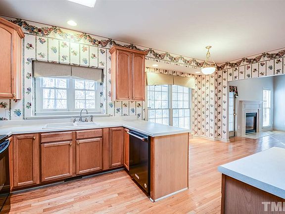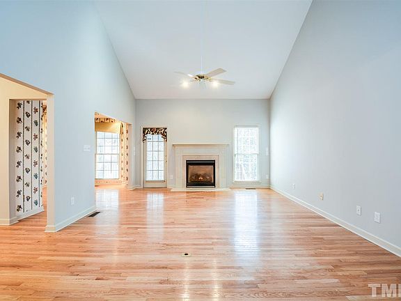 This Apex one-story cul-de-sac home offers a porch, hardwood flooring, a fireplace, and a two-car garage. Upgraded features include a new roof. A community pool is part of the Shepherds Vineyard HOA.