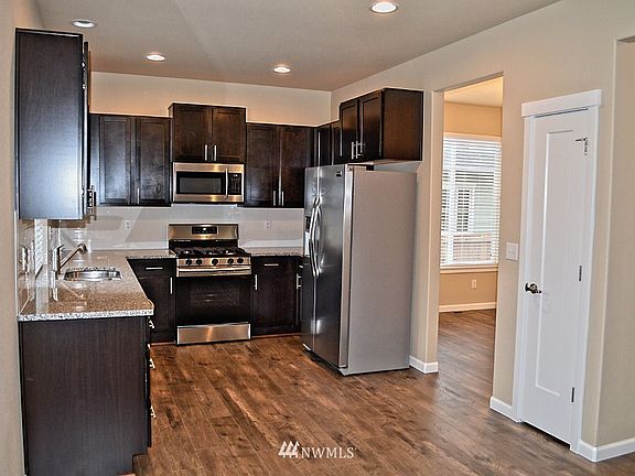 Like new 4 bedroom home plus den in Tumwater. This 2102 sq ft home backs up to a wildlife pond, with wonderful nature views every day. Interior features include granite kitchen counters, Samsung stainless steel appliance package including 5 burner gas range, gas fireplace, extensive laminate flooring, white painted millwork package/etc. 2" blinds throughout and refrigerator included. Built by High Definition Homes, an award winning local builder. Located close to services/schools/freeway access.