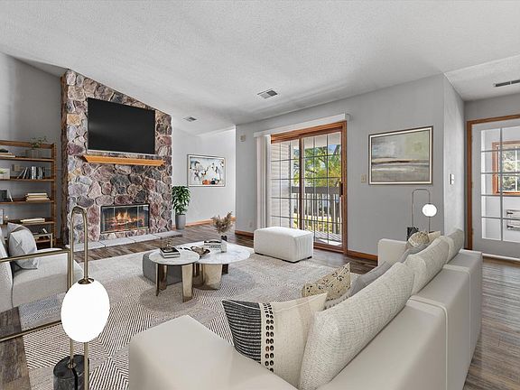 You can still be home for the holidays in Pewaukee's desirable Sunset Meadows! This spacious 2-bedroom, 2-bath home offers a perfect mix of style and convenience. The open-concept great room features newer flooring, a cozy stone gas fireplace, and a charming reading nook that opens to your private balcony. The kitchen shines with granite countertops, a coordinating backsplash, and plenty of storage. Both bathrooms are tastefully updated, and the bedrooms offer generous closet space with organization systems. Enjoy in-unit laundry with full-size stackables and an attached 1.5-car private garage. Ideally located near Hwy 16 and just minutes from downtown Pewaukee and the beach and everything Lake Country has to offer. Nothing to do but move right in and make it home!