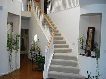 This outstanding home features almost 2600 sq ft of living space with 4 bedrooms, 3 full baths, den or media room, hardwood flooring, upgraded carpets, vaulted ceilings, formal dining and living rooms, a large kitchen with Corian Countertops, upgraded appliances and more. Other features include 2 tone paint, 2 awnings located in a park like backyard and a 3 car garage. Priced to sell!