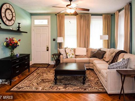 They don't make them like this anymore! Handsome 3-story brick semi boasts open 1st flr layout w/ parquet floors in LR & DR, picture windows, elec FP, LG updated Kit w/ SS appliances; 1st fl Laundry & full BA; ceramic & hardwood thruout; MBR w/ bump out & 2 closets; balcony off the 2nd BR. Tasteful decor, lovely landscaping & wonderfully pvt fenced bkyd w/ patio & deck. A pleasure inside & out!