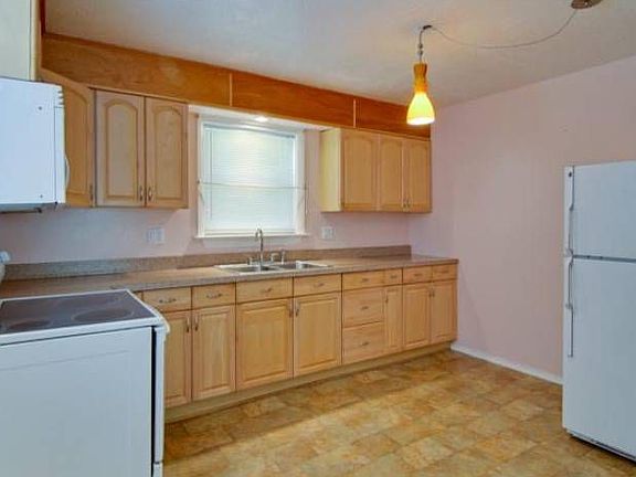 Hardwood floors throughout most of first floor (except kitchen and bathroom). Nice eat-in kitchen with newer appliances. Beautiful privacy-fenced back yard with mature trees. Full unfinished basement with lots of potential. A great starter home and priced just right. Red Front just around the corner!