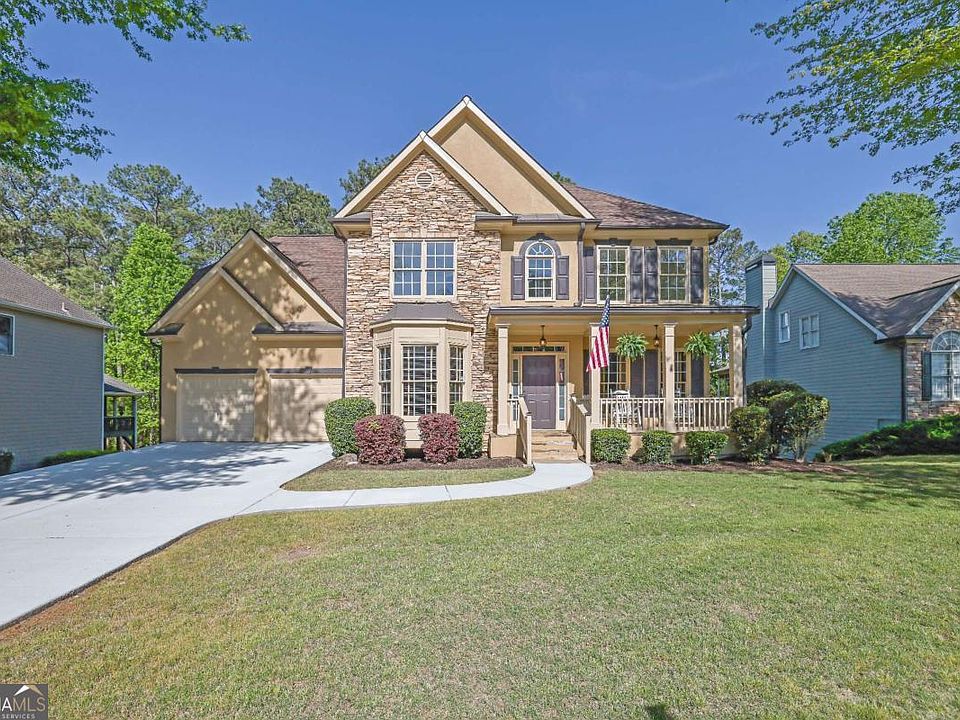 Welcome Home! An Inviting rocking chair front porch leads the way into this beautiful home. Not to mention, what an AMAZING VALUE in the BridgeMill Community! This lovely two-story home offers some wonderful renovations with remodeled kitchen and master bath all new exterior and interior paint, resurfaced hardwood flooring, brand new driveway, amazing tiered and fully fenced backyard, wonderful for entertaining along with so much more! The spacious open floor plan features a large family room with a cozy fireplace, perfect for relaxing or entertaining. The well-appointed kitchen boasts stainless steel appliances and ample cabinet space, making meal prep a breeze. On the second floor you will find an inviting owners suite with a large walkin closet and custom built dresser in along with a luxurious oversized soaker tub, large walk in shower and custom dual vanity top overlooking a private, peaceful backyard. All three guest bedrooms upstairs are generous in size, perfect for multiple pieced furnishing sets. Three additional bedrooms share a full bathroom, while a convenient half-bath serves the main living areas. This amazing home also is complete with an unfinished walk out basement, which has its own zone for heating and cooling, is the perfect space to put your own personal touch on this home, with plenty of room for an additional bedroom(s), bathroom, home office, workshop, gym and more. The back yard has been professionally tiered to maximize the full potential of the outdoor space, making it the perfect canvas to build upon and create that outdoor living space that is ideal for entertaining on one tier while having plenty of room to roam, romp and play on the lower tier. It makes for the perfect backyard retreat! The Bridgemill community boasts an award-winning championship golf course, a 2-acre aquatic center, 21 tennis courts, 10 pickleball courts, beach volleyball courts, a fitness center, playground, restaurant, and clubhouse (athletic club memberships vary to fit your lifestyle). The area also features top-rated schools, shopping, and dining, along with serene walking trails, mountain biking trails, and quick lake access for outdoor enthusiasts. This is a rare opportunity to own a beautiful home in one of Canton's most desirable neighborhoods!