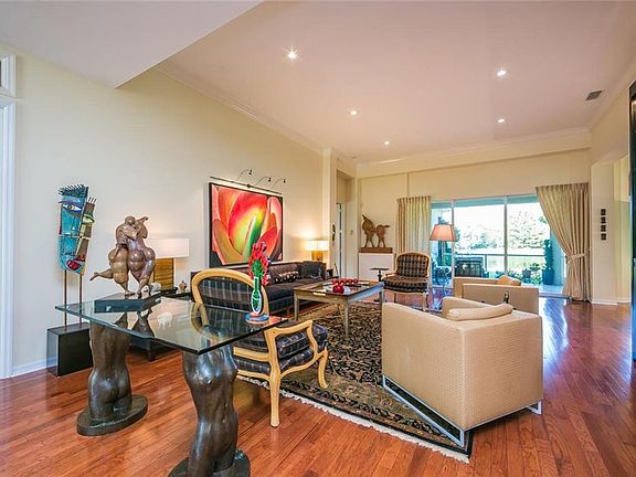 QUALITY APPOINTMENTS, EXQUISITE CUSTOM BUILT-INS, GREAT STYLE and simply stunning. This home is a must-see for buyers looking for an interior with quality appointments that is a step above. Expanded to over 2770 sq ft, this is an open great room plan with lovely lake and garden views. Gorgeous double glass entry doors, hardwood flooring, an expansive owner's retreat with his and hers outfitted closets and updated bath, private guest suite, rarely available powder room and an office that is not only functional with incredible cabinetry but can accommodate two people. Enjoy cooking in the kitchen which too boasts superior cabinetry, double ovens, gas cooktop, and granite countertops. The community pool is just steps away but there is plenty of room to add a pool. Please view virtual tour to see just how special this home is...you will not be disappointed.