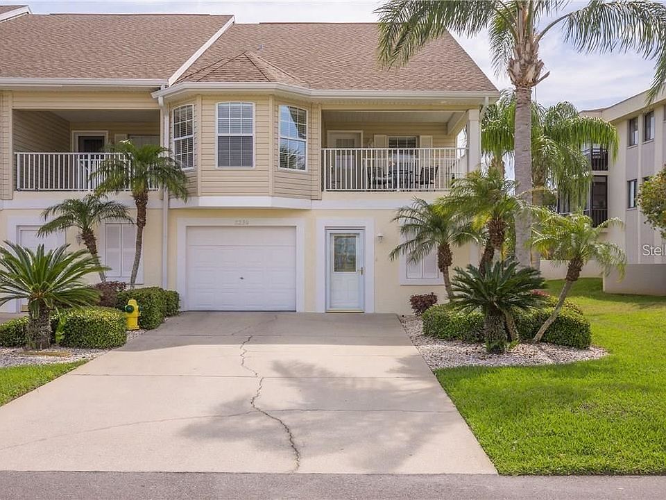 Resort-style living, on the Cotee River, minutes to the Gulf of Mexico. This meticulously maintained, fully furnished, townhome is a rare find, end unit. The beautifully updated kitchen has granite counters and stainless steel appliances that open to a large open living area. Split bedrooms boast vaulted ceilings throughout the home and have both front and back water views. The large master bedroom has a custom walk-in closet with ample storage and an ensuite bath with double vanity. The guest bedroom has a bay window for sunset views. The lower level has a 3 car (tandem) garage with a bathroom, workshop, and screened patio leading out to the privately deeded floating dock directly behind this home. The community offers a 24-hour manned security gate, a newly constructed clubhouse with a fitness center, library, card room, and game tables. Just across the street, you'll find a pool, tennis courts, boat ramp, fishing pier, and waterfront boardwalk. Kayak/Boat parking/storage just outside your back door. Sand Pebble is close to shopping, medical, waterfront dining, and other waterfront activities, close to historic downtown Sims Park in New Port Richey. Easy commute to Tampa, Clearwater, and Homosassa.